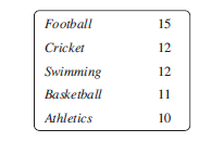 60 students were asked to choose their favourite sport. These are the results: