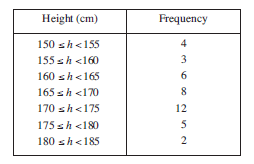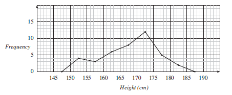 Draw a frequency polygon for the data on the height of children, given in cm, in the table below.