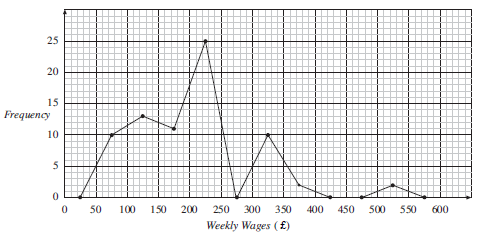 Note that points have been placed on the horizontal axis in the intervals that have frequencies of 0. The points can then be joined to give the frequency polygon below.