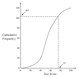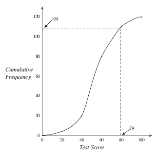 The cumulative frequency graph below gives the results of 120 students on a test.