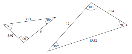 For two triangles to be similar, they must have the same internal angles, as shown in the similar shapes below.