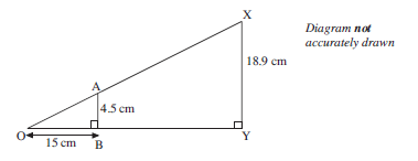 As the lengths are increased by a factor of 1.5 or for the larger triangle, the