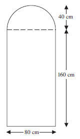 Find the area of the door shown in the diagram. The top part of the door is a semicircle.