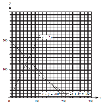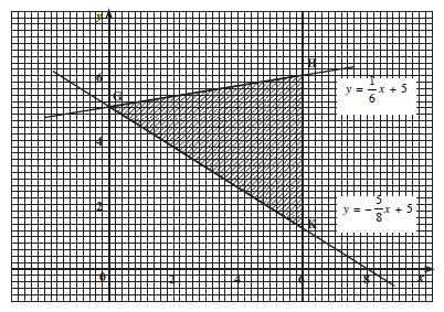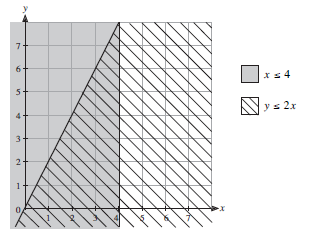 The shaded area in the diagram below shows the solution of a set of inequalities in x and y. The variable x represents the number of boys in a cricket club and y represents the number of girls in the cricket club.