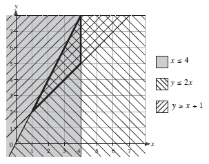 x ≤ 4, y ≤ 2x, y ≥ x + 1