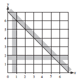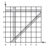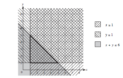 If more than one inequality has to be satisfied, then the required region will have more than one boundary. The diagram below shows the inequalities x ≥ 1, y ≥ 1 and x + y ≤ 6 .
