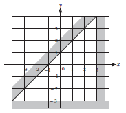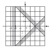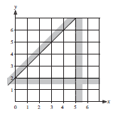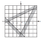 The triangle indicated by bold lines has all three shadings. The points inside this region, including those points on each of the boundaries, satisfy all three inequalities.