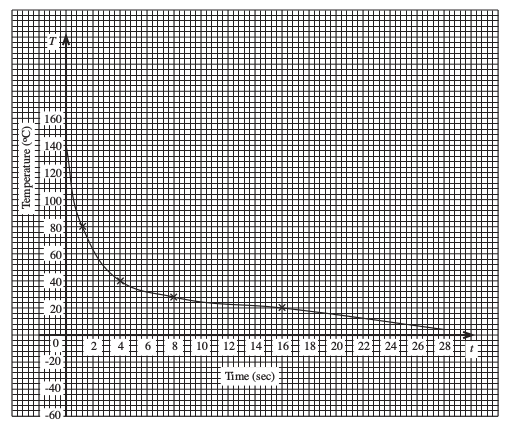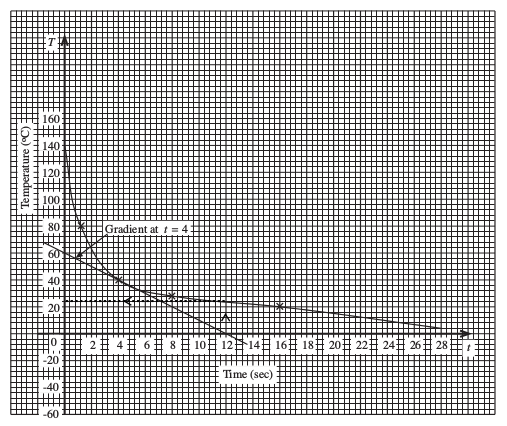 From the graph, temperature ≈ 24°C at time 12 secs.