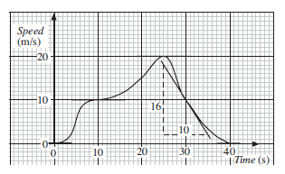(b) The speed of the ball is a maximum when the curve is steepest, that is at t = 0 and t = 1.6. At t = 1.6 the gradient is = −8. So the speed is 8 m/s.