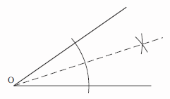The bisector can then be drawn from O through the point where these two new arcs cross.