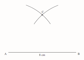 Using C as the centre, draw an arc as shown.