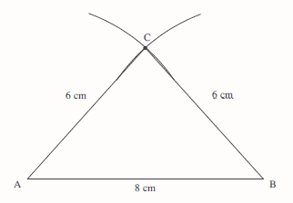 Construct a triangle with sides of length 8 cm, 6 cm and 6 cm.