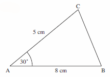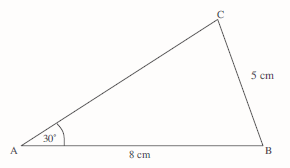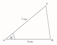 Both triangles have the lengths and angle specified in the rough sketch.