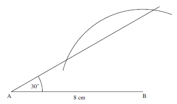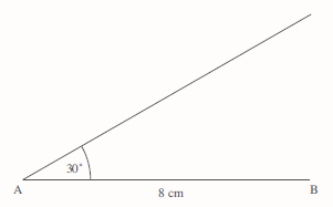 First draw the side of length 8 cm and measure the angle of 30°, using a protractor, as shown below.