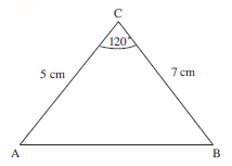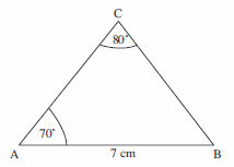 Then measure 7 cm along the line and the triangle can be completed.