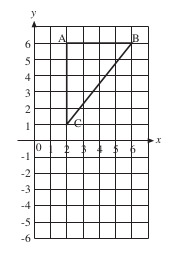 Rotate the triangle ABC shown in the diagram through 90° clockwise about the point with coordinates (0, 0).