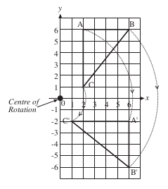 • A to F: | Rotation of | 90° | anti-clockwise about the point (0, 4). |
