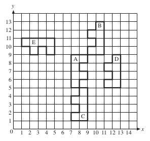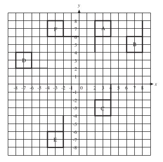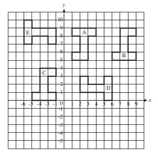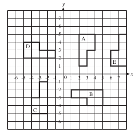 • A to E: | Rotation of | 180° | about the point (0, 0). |